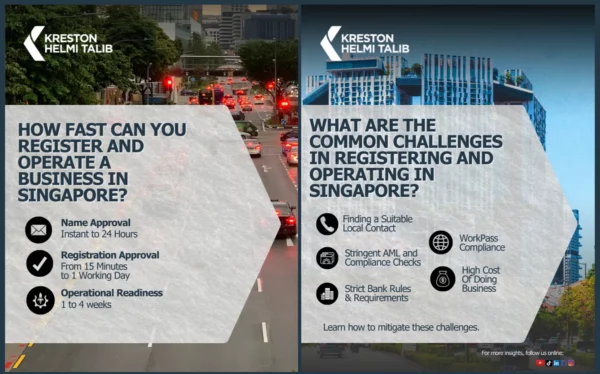 Setting up in Singapore is efficient and seamless. With its highly digitalised and centralised platform for business registration and compliance management and its strict financial controls, the regulatory landscape is designed to reward transparency and professional conduct. As long as you ensure compliance to all regulations and engage credible and responsive CSPs, Auditors, Accountants, and Tax Consultants, you are one step away from scaling more success opportunities for your business.