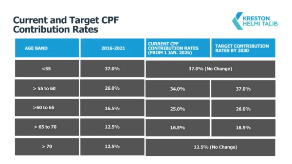 Table 1: Current and target CPF contribution rates by age bands