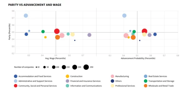 Figure 8. Gender Parity vs. Wages and Advancement by Industry -